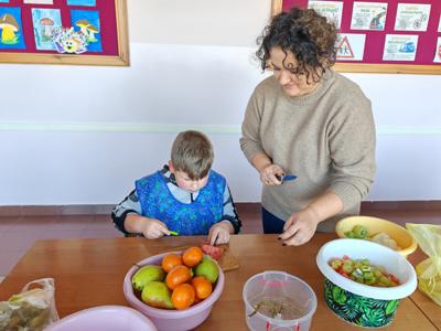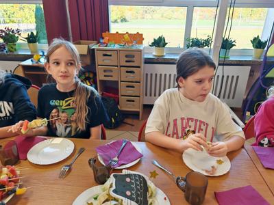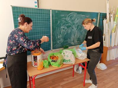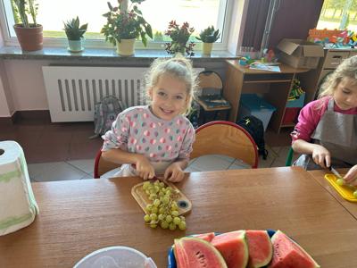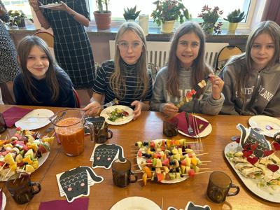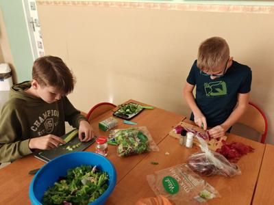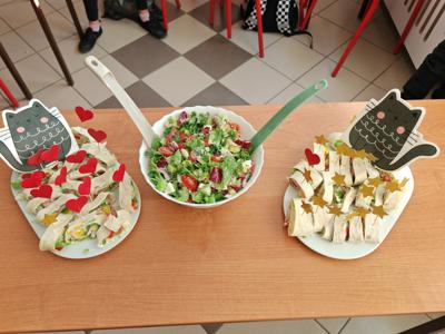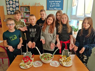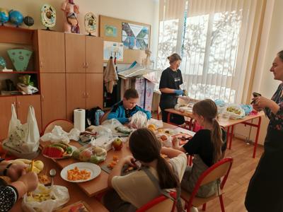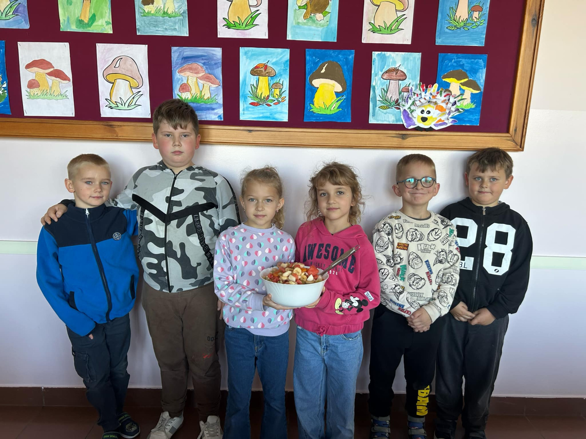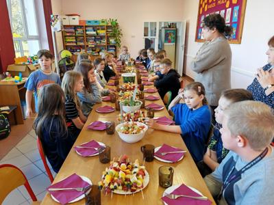 18 października świętowaliśmy Światowy Dzień Owoców i Warzyw. Z tej okazji Samorząd Uczniowski zorganizował akcję, w ramach której każda klasa przygotowała zdrową przekąskę z owoców lub warzyw. Powstały pyszne sałatki, koreczki oraz roladki, a niezawodne mamy przygotowały wyśmienite soki owocowo-warzywne. Następnie, wspólnie degustowaliśmy te witaminowe smakołyki. Zachęcamy wszystkich, aby świętować każdego dnia - jedząc warzywa i owoce bogate w witaminy.