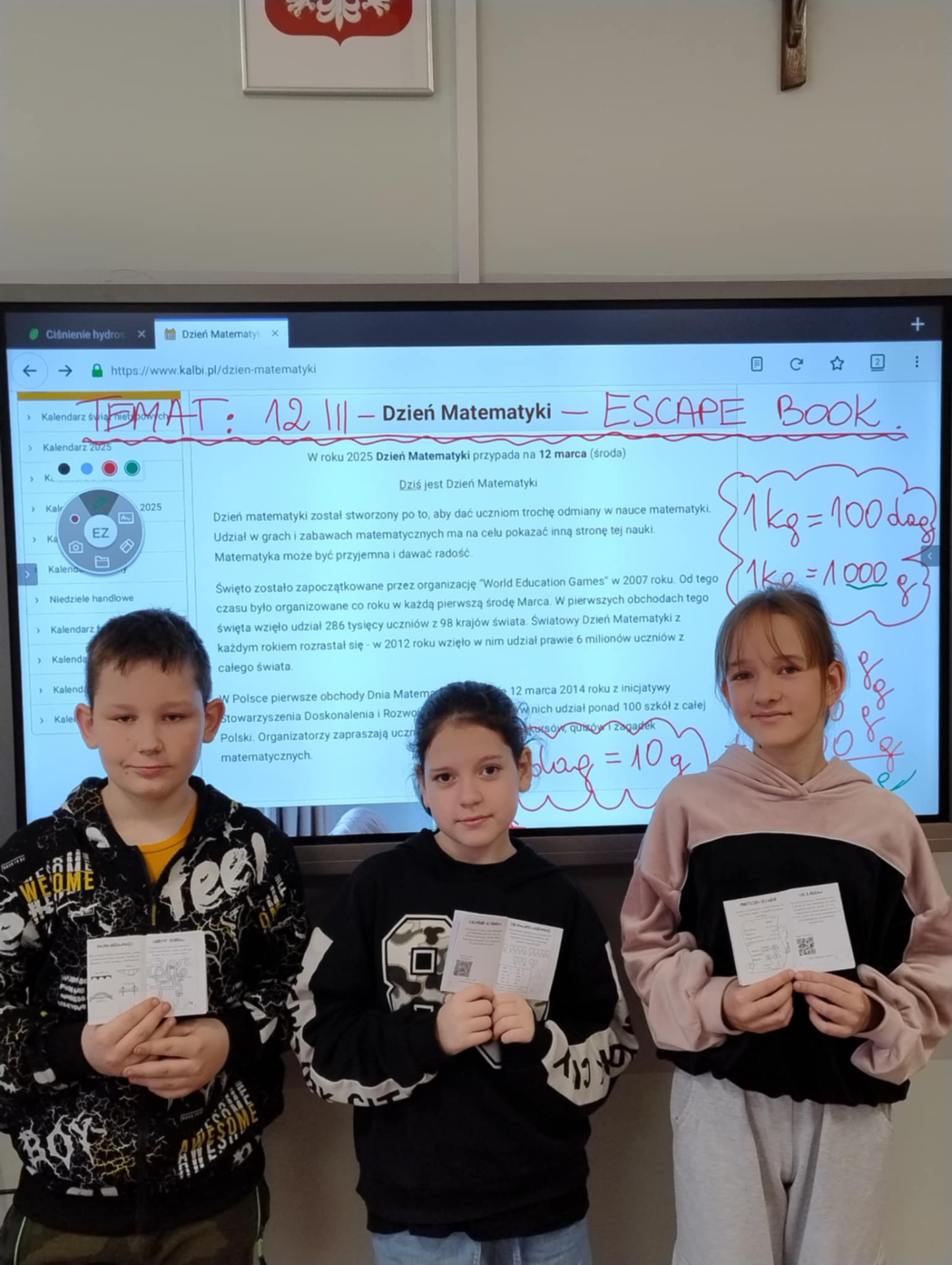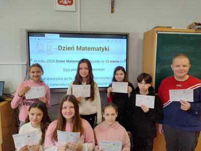 12 marca obchodziliśmy w naszej szkole Dzień Matematyki, zas 14 marca - Dzień Liczby Pi. Dni te były okazją, aby uczniowie poprzez zabawę, rozwiązując zagadki, krzyżówki i łamigłówki matematyczne powtórzyli i utrwalili wiadomości z matematyki (m.in. jednostki, ułamki zwykle, pola figur, pojęcia z arytmetyki i geometrii).
