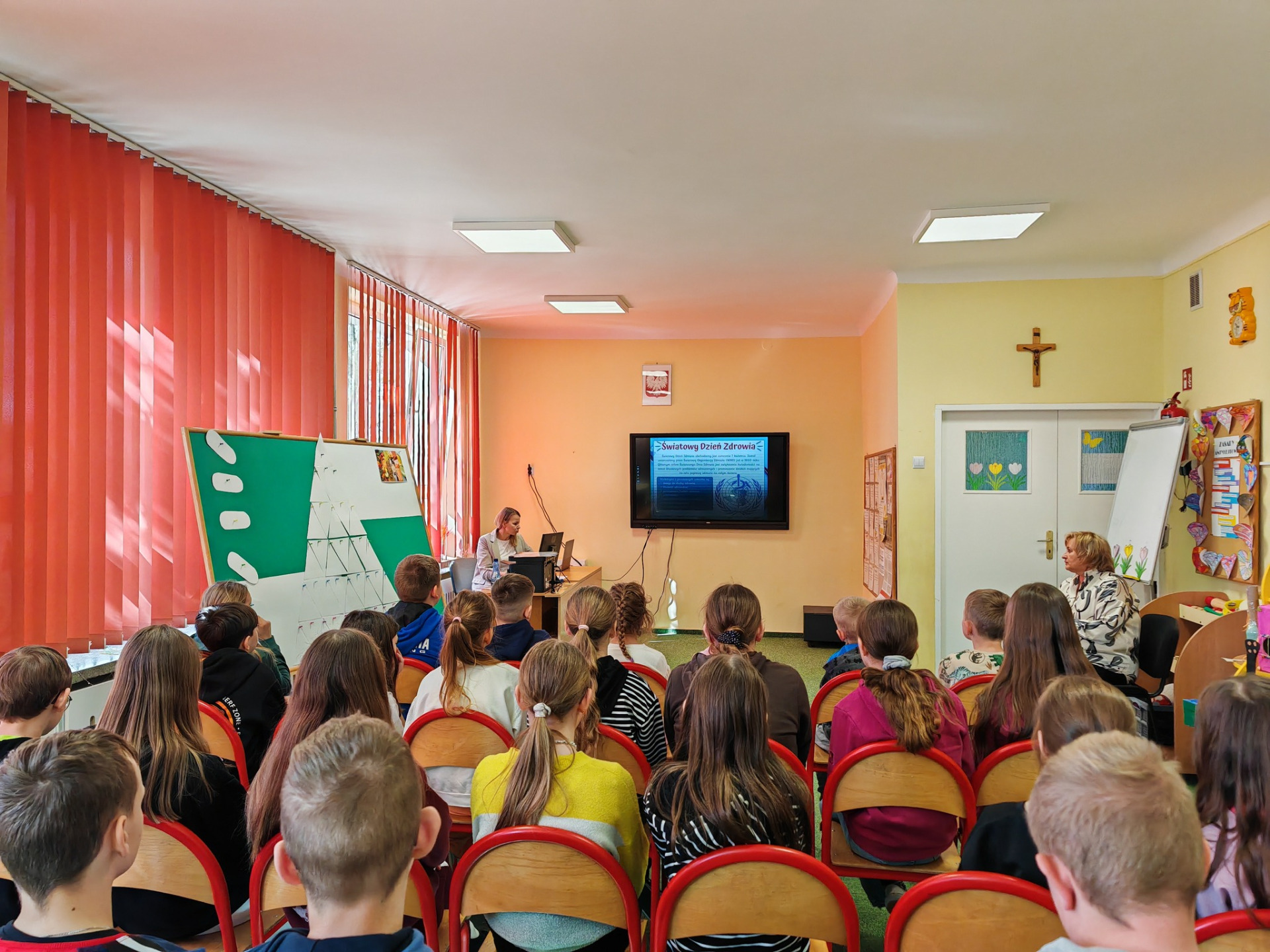 Tegoroczne hasło przewodnie Światowego Dnia Zdrowia to „Zdrowe początki, pełna nadziei przyszłość”, koncentruje się na zdrowiu matek i dzieci. Dobre zdrowie w pierwszych latach życia ma ogromne znaczenie w przyszłości, dlatego w naszej szkole odbyło się spotkanie dla wszystkich uczniów m.in. na temat zdrowego stylu życia. Składało się ono z prelekcji p. A. Gizińskiej, quizów dotyczących zdrowia, wspólnego tworzenia piramidy zdrowego żywienia. Kolejnym punktem była stanowiąca podstawę piramidy zdrowia – aktywność fizyczna prowadzona przez p. K. Bartkowską.