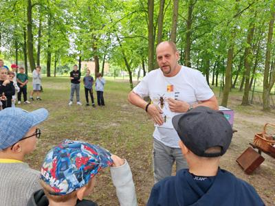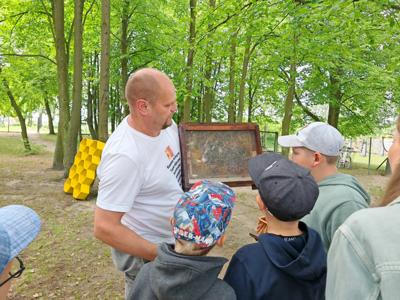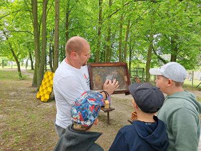 Wczoraj gościliśmy pana Piotra Budziszewskiego z fundacji "Miód i Malina", który przeprowadził warsztaty pszczelarskie. Uczniowie dowiedzieli się wielu ciekawostek na temat życia pszczół, mogli zobaczyć jak wyglądają te pracowite owady oraz przygotowali własne świece z pszczelego wosku. Podczas zajęć nie zabrakło zabaw ruchowych oraz degustacji pysznego miodu. Serdecznie dziękujemy za tę wyjątkową wizytę i cenną lekcję przyrody!