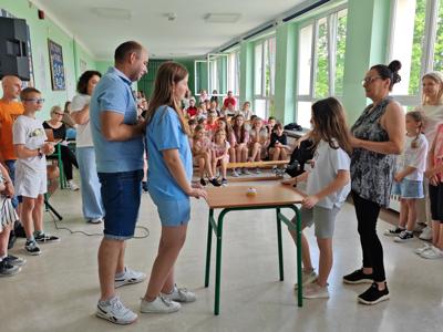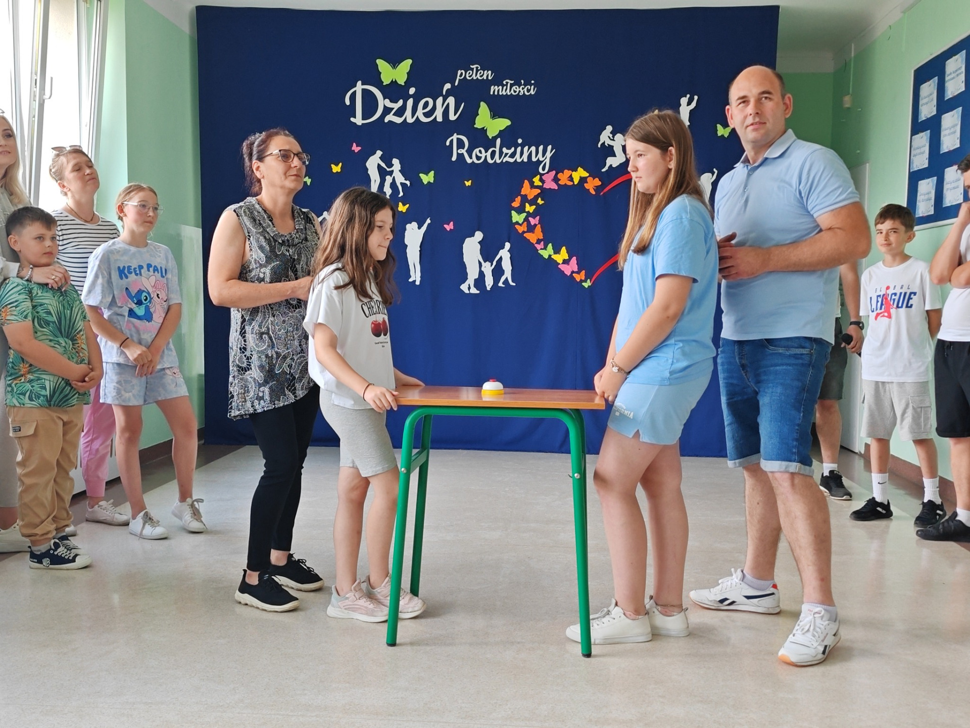 Na początku czerwca obchodziliśmy w naszej szkole Dzień Rodziny, czyli święto rodziców i dzieci. Z tej okazji na wszystkich czekało mnóstwo atrakcji. Najpierw uczniowie podziękowali swoim rodzicom wierszem i piosenką w pięknym występie pod kierunkiem pani S. Żółtowskiej. Pani dyrektor B. Makowska oraz pani Przetacka, przewodnicząca Rady Rodziców, podziękowały za występ i złożyły życzenia rodzicom i dzieciom. Następnie rodzice z dziećmi zostali zaproszeni do udziału w Turnieju wiedzy o rodzinie. Dwie drużyny, Mamusie i Tatusiowie, rywalizowały ze sobą odpowiadając na podchwytliwe pytania. Po wysiłku umysłowym przyszedł czas na wysiłek fizyczny. Rodzice z dziećmi wzięli udział w różnorodnych konkurencjach pod czujnym okiem pani. K. Bartkowskiej. Po zawodach wszyscy odpoczęli przy ognisku z kiełbaskami, lodach, cieście i kawie. Dziękujemy za wspólną zabawę!